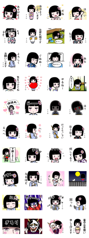 『トトロ』用のよく使う言葉を詰め合わせた座敷童子のスタンプです。和服 着物 浴衣かがりひな より発売