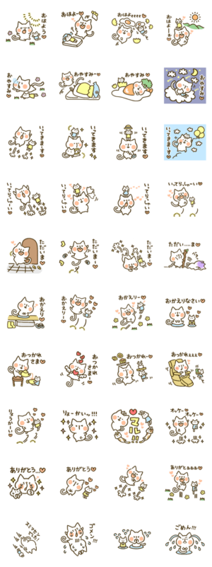 日常で必ず使う、おはよう、おやすみ、いってきます、いってらっしゃい、ただいま、おかえり、おつかれさま、了解、ありがとう、ごめん。各4つずつのセットです。ちゃのすけ。 より発売