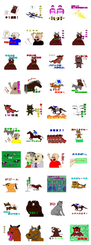 競馬女子によるスタンプ第1弾。ゆるり競馬好きのために作られた日常で活躍間違いなしのG1ホース勢ぞろい♫見れば見るほどクセになる!
