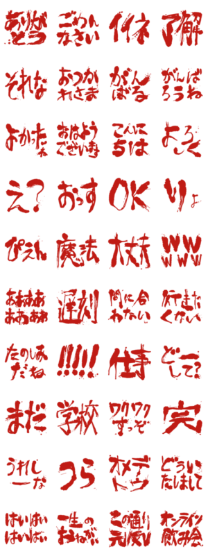 普段よく使う言葉を集めました。ちょっとおどろおどろしい感じの文字で、急に緊張感アップです。