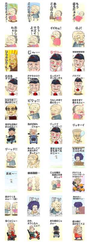 プルプルおばあちゃん、プルプルおじいちゃん達のBigスタンプです。