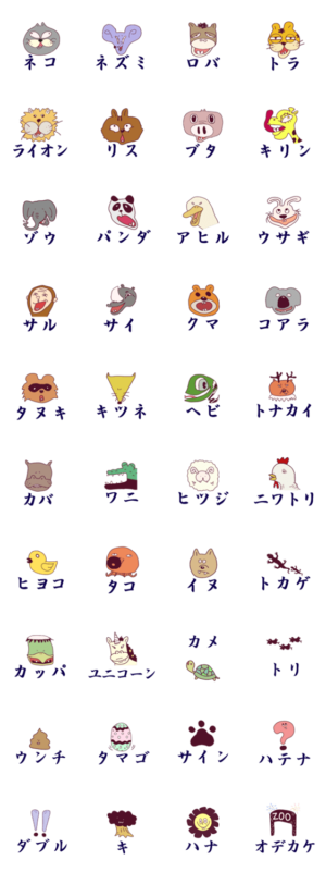 この森では お世辞にも可愛いとは言えないけど どこか憎めない絶妙にキモい動物たちが住んでいます。 そんな動物たちの無意味なスタンプ! 同シリーズ絵文字販売中。chiko より発売