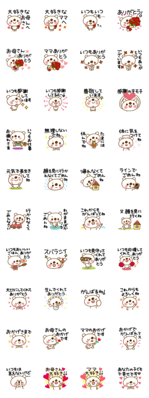 お母さん、ママに感謝を伝えるスタンプ。あなたの優しい気持ちをスタンプで伝えよう!