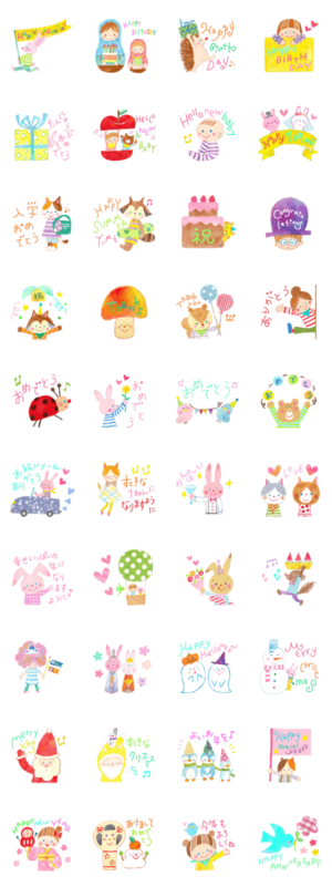 お祝いメッセージを送りたい時に、絵本から出てきたような淡いイラストが可愛くてよく使っています。