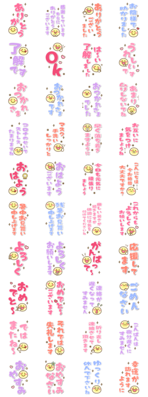 スマイルにこまる、大人シンプルBIGスタンプ、筆デカ文字カラー❤てんこ盛り言葉【基本】敬語タメ語/長文/コロナ/夏等いろんな言葉がたっぷり入って便利❤作:usakazu1 ※このスタンプはトークルームで大きく表示されるBIGスタンプです。usakazuスタンプ より発売