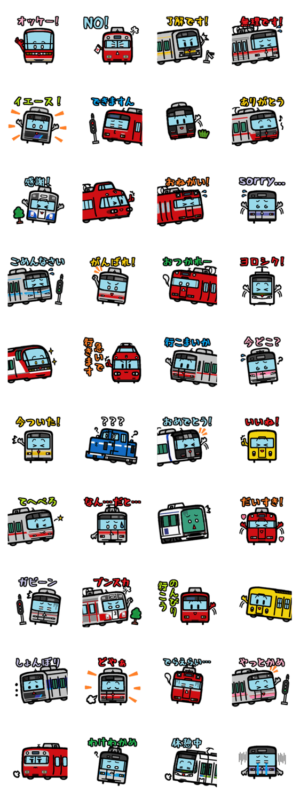 デフォルメした可愛い電車のスタンプです。溝犬堂 より発売