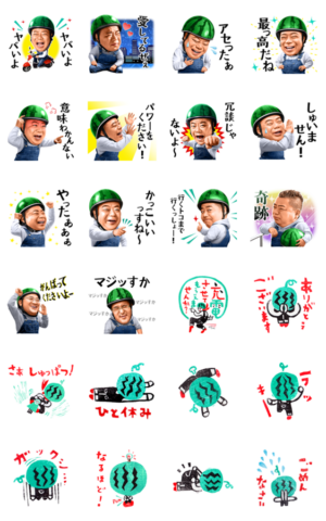 ヤバイよ!ヤバイよ!テレビ東京「出川哲朗の充電させてもらえませんか?」がリアルガチなボイス付きでスタンプ化♪スイカの版画や同行ディレクターまで揃ったセットです。