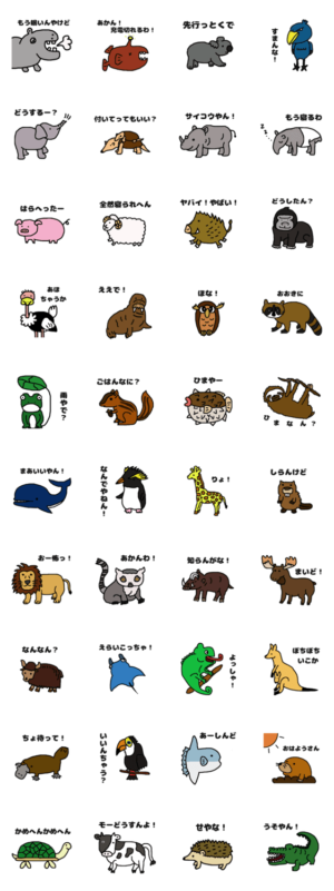 大阪弁アニマル スタンプ画像一覧