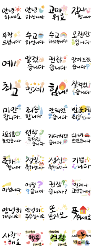 日常で使える韓国語、ハングルの敬語のスタンプです。f.r.n より発売