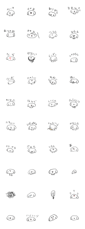 左手で描いてみた犬のぺろちのスタンプです。Pantovisco より発売