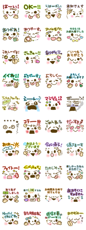 さまざまな場面で使用できるスタンプですね。顔の表情が癒されます。