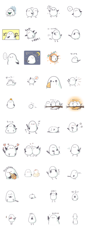 シマエナガをモデルにしたスタンプ。ちょっとぽっちゃりでふわふわなシマエナガです。なつめ ゆきち より発売