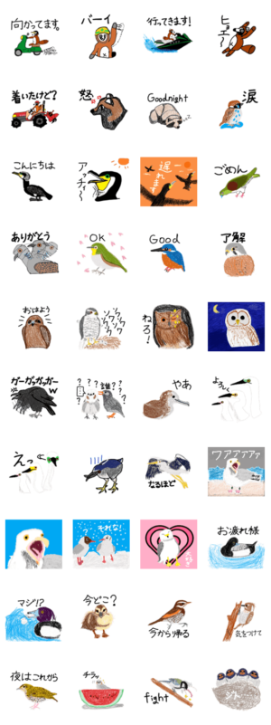 ヤマタク動画で登場したイラストがスタンプになりました! その他にも野鳥病院にいる鳥たちも多数収録。よかったら使ってみてね!yamataku より発売