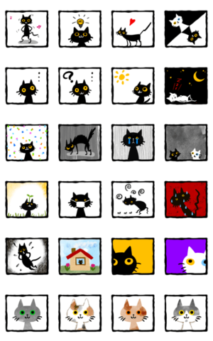 枠の中っていうのが新しい!囲まれて猫スタンプも世界観あって可愛い。