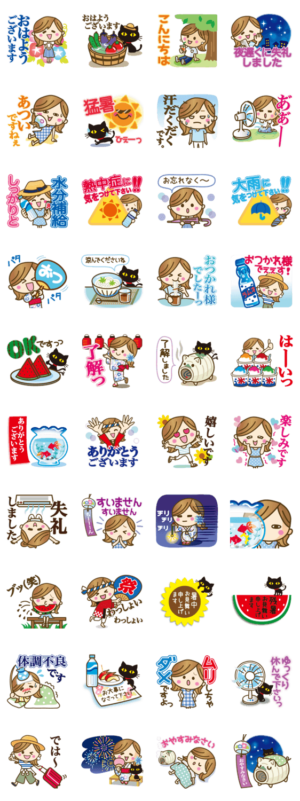 夏〜真夏にかけて使える言葉が満載〜!日本の夏を感じれる楽しいスタンプです。敬語で文字も大きく使いやすい!紅おれんじの大人女子の丁寧な即答♥シリーズも好評発売中♥