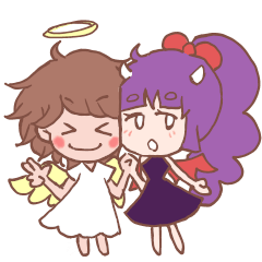 楽天家の天使ちゃんと無口目な悪魔ちゃんの日常。ふたりは仲良し。天使ちゃんは早く家に帰りたいタイプです。まころ より発売