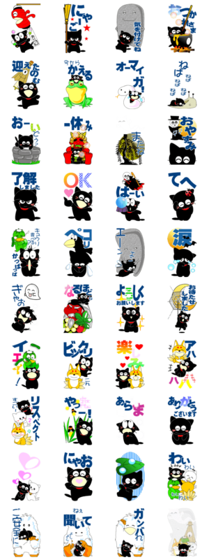 可愛い黒猫さんが妖怪やあやかし達と織りなす楽しい会話のBIGスタンプです。