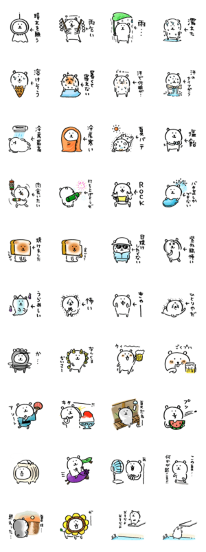 自分ツッコミくま 夏 スタンプに書いてある文字一覧