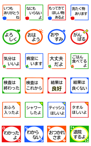 入院中に使うスタンプが有るなんてビックリしました。このスタンプが有れば安心して休養できますね。