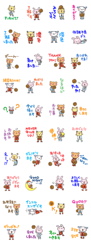 バスケットボールをしている人も、応援する人も、見るのが大好きな人も。日常使えることばを集めました。スタンプでもバスケを楽しんじゃお!