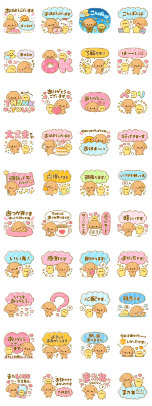 ふわもこのトイプードル、カラフルなスタンプになっています♡♡