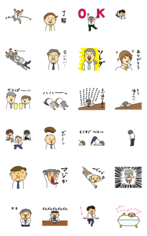 動くおじさんスタンプ。おじさんとはいえ、かわいい部分があって使うのが楽しいです。