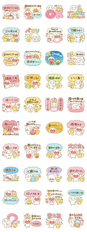 毎日使える言葉がいっぱい♡ふわほわマシュマロ、ちびマロちゃんのカラフルなスタンプです。ぴよたぬき♡ より発売