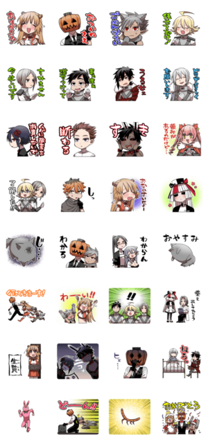 カボチャ頭と半巨人の少女が繰り広げる逃亡劇!マンガ永年戦争のスタンプです!竹鶏 三歩 より発売