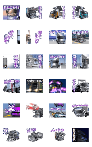 トラッカー向けのスタンプです。他の「動く!車(トラック2)や3と台詞が被らない様にしています。