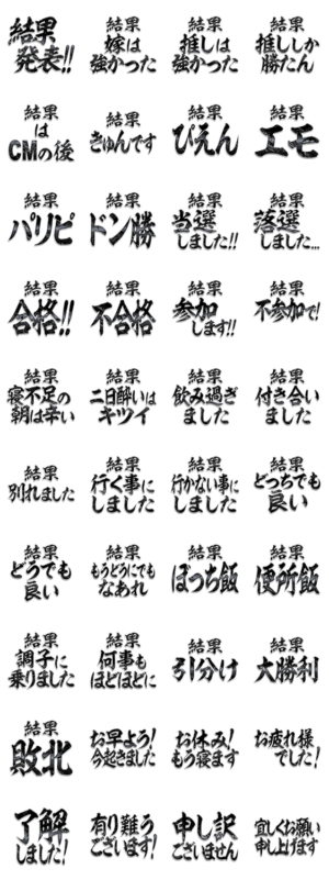 結果発表~~~!!!!!!笑い/冗談/ネタ/使える/文字/漢字/面白/パリピ/エモ/きゅん/推し/漫画/ゲームチェケジ より発売