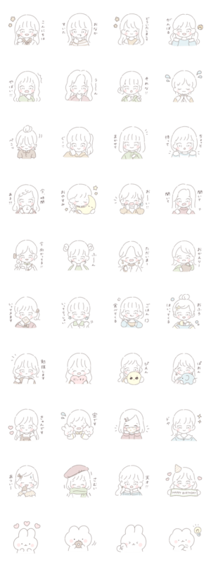トーカのまいにちスタンプ第2弾です!ゆるふわな女の子たちのスタンプです♡ 日常の挨拶やリアクションなど使いやすいものをつめこみました○