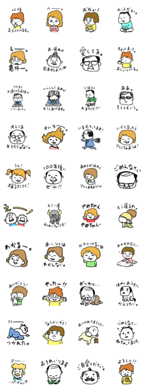 こちらのスタンプは『愛してる。』や『いまむかっています』などおじさんキャラのスタンプもあっておもしろく使えると思います。