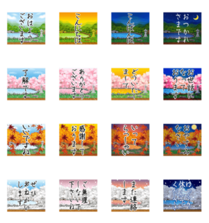 日本の四季折々の風景が楽しめる、華やかな大人の為の和風スタンプ。桜や紅葉、雪景色が美しい。誰にでも毎日使えて便利です。