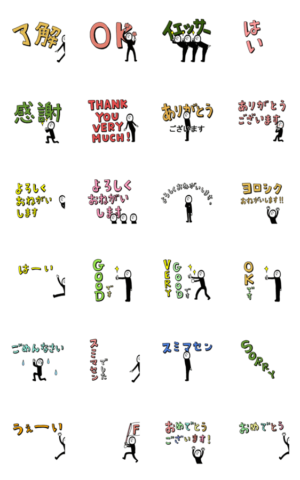 カラフル文字と小さいタイツマンの動くスタンプです。TFAS より発売