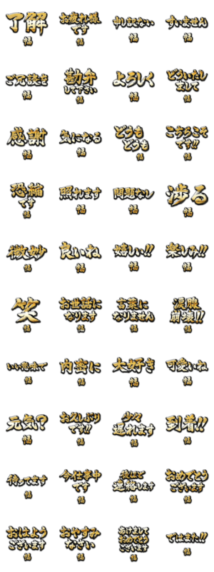 【幅】専用。黄金の筆文字スタンプ。キャラなし、デカ文字。お値段そのままで超豪華、超ゴージャス。贈答用に最適。