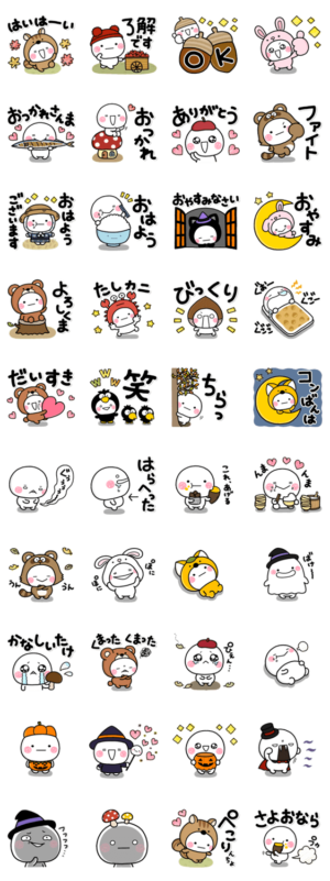 しろまるの秋スタンプ(2020最新ver)。大人の方にもおすすめな落ち着いたスタンプです。【策:いしいともこ】