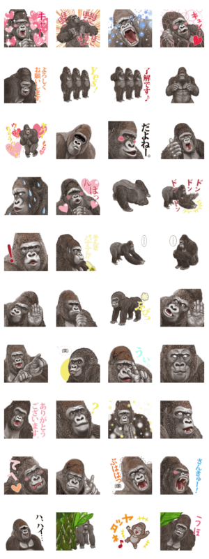 おちゃめでシュールなシルバーバックのスタンプです。もふごり より発売