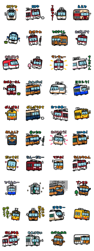 デフォルメした可愛い電車のスタンプです。溝犬堂 より発売