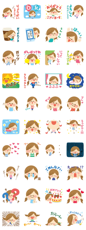 かわいい主婦の1日ゆるカラー編のスタンプで女の子のよく使う言葉や表情のスタンプがあるので気軽に使うことができます。