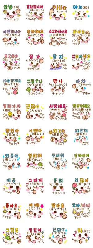 顔文字とメッセージ韓国語編 スタンプ画像一覧