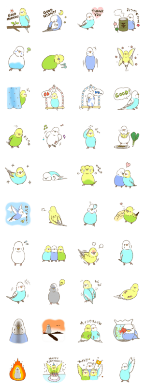 健気に生きるセキセイインコたちのスタンプです。まいたけ より発売