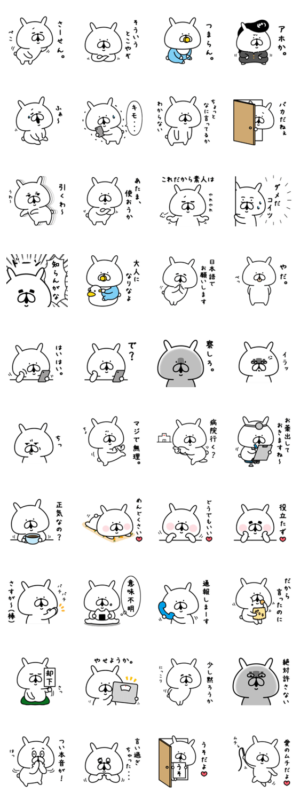 ゆるうさぎの毒舌スタンプです。たまには厳しくツッコミたい、そんな時に使ってください。家族や友達、彼氏彼女、先輩後輩など仲の良い方との日常トークにどうぞ。chococo より発売