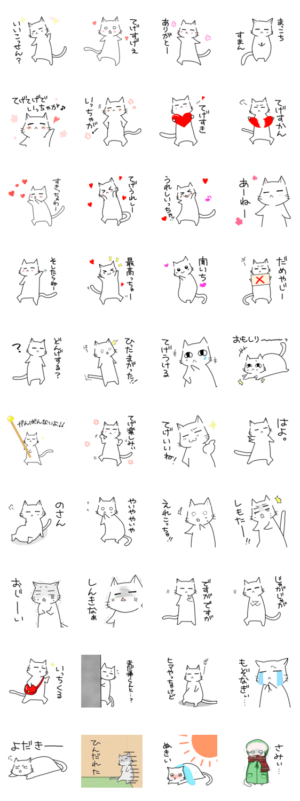 ちょっとおじさんっぽいがに股のねこが宮崎の地に降り立ちました!宮崎弁を喋る白猫。遠方のご家族、友人、パートナーにおすすめです。お隣、鹿児島や都城の方も使えます。