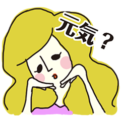 ロングヘアーが自慢の女の子。使いやすいスタンプが詰まっています!eminmi より発売