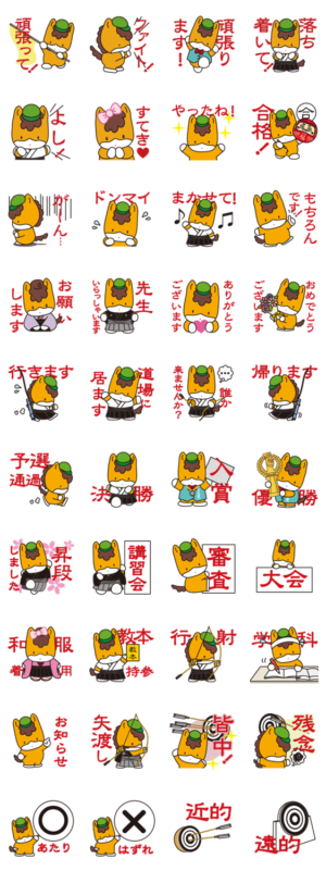 群馬県のマスコット「ぐんまちゃん」のはかまや和服姿がかわいい、弓道スタンプ。弓引きさんに使いやすい!弓道以外の応援にも。オートサジェスト対応!許諾第28-060508号
