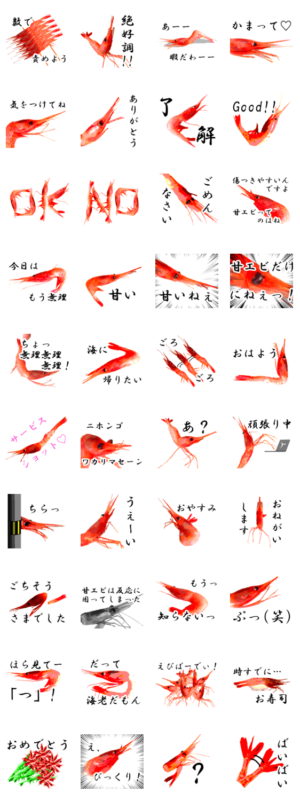 「ぷりぷり甘エビ」の無料スタンプを検索
