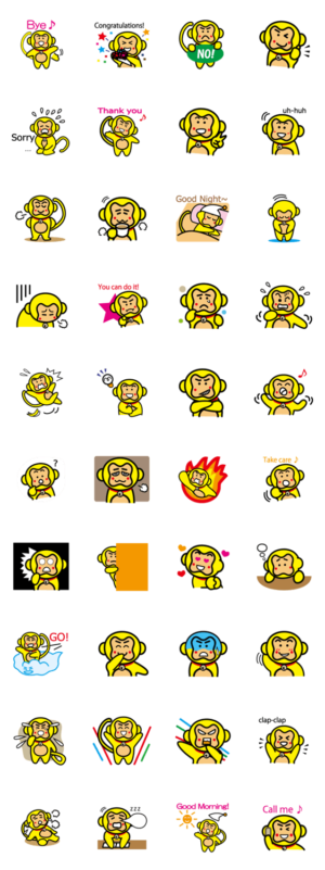 これは、縁起の良い色の黄色のお猿さん『福鈴(フーリン)』のスタンプです。