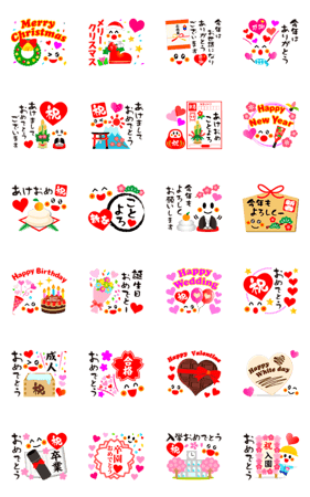 誕生日や結婚など、おめでたいお祝い事やクリスマス・お正月・成人式・バレンタイン・入学・卒業などの年間イベントに、『おめでとう♪』シーリズの動スタ第2弾です