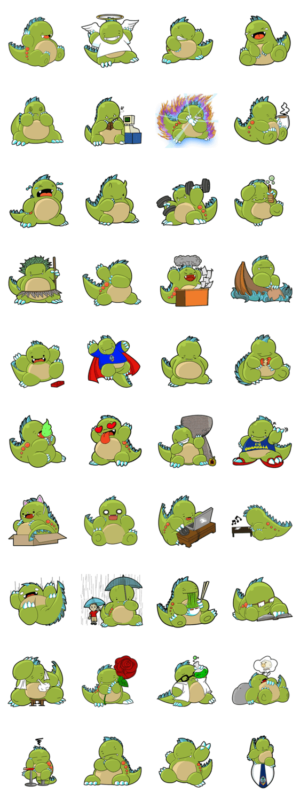 グアムにきたらこのスタンプを利用してください! グマモン は海からきたかわいい怪獣です。以前はストレスがいっぱいだったけど、グアムにきてすっかり癒されました!Asher Goldenberg より発売