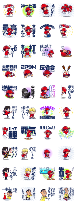 野球チーム応援スタンプ第五弾!「ボクとネエやんと時々オッサン」生粋も、にわかも、広島女子も、野球観戦以外でもコミュニケーションできる日常会話を厳選!文字大きめ!RED CARPET より発売